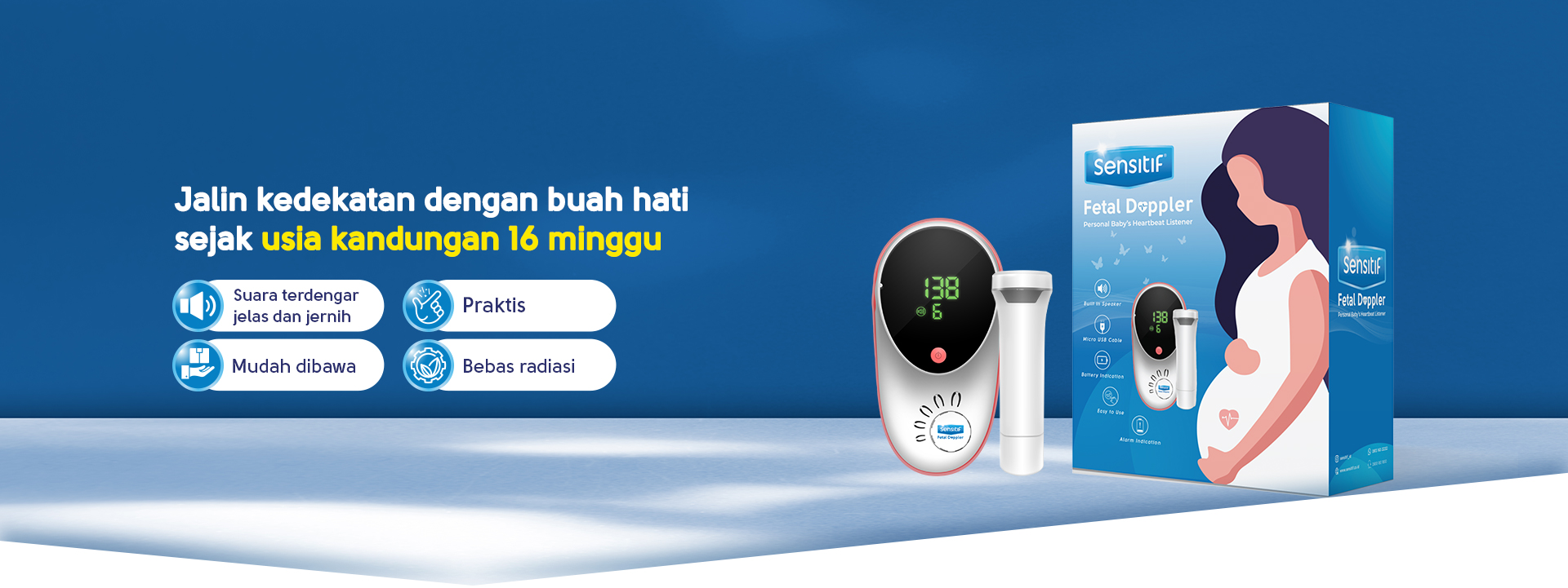 Sensitif Fetal Doppler mudah digunakan, praktis, dan aman digunakan sejak usia kehamilan 16 minggu. Dilengkapi dengan layar digital dan suara yang jernih, Sensitif Fetal Doppler dapat menjadi alat bonding yang indah antara Bunda dan buah hati sejak dalam kandungan.